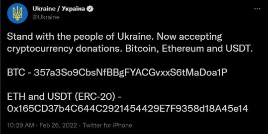 But to be fair, I posed this question to a certain generations representation of āsuccessā from societyās eyes. My thoughts are⦠what happens if Ukraine is invaded and the oppressors of said invasion make your storage of value worthless? What if leadership manages our accounting poorly and our currency starts to go to 0? What happens to currencies that are off the GS? What if⦠digital assets become life saving assets in those types of scenarios? The next week after that dinner @Ukraine tweeted this⦠and I got -lucky-.